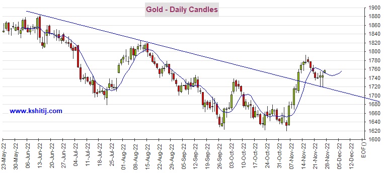 周五(11月25日)亚市盘中,黄金期货维持升势,期金刚刚突破1760美元/盎司关口,目前位于1761美元/盎司左右,日内大涨逾15美元。Kshitij咨询服务团队(Kshitij Consultancy Service)周五最新撰文,对黄金期货、白银(21.38, 0.02, 0.07%)期货、原油(78.39, 0.45, 0.58%)期货和铜期货后市走势进行前瞻分析。