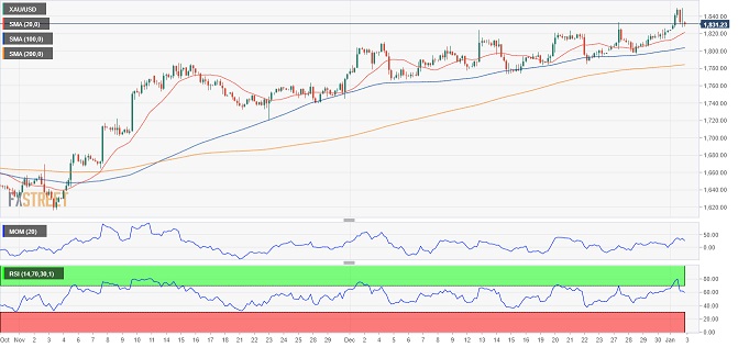 周三(1月4日)亚市盘中,现货黄金短线突然急涨,金价刚刚一度突破1845美元/盎司关口,最高触及1845.95美元/盎司,刷新日内高点。FXStreet首席分析师分析师Valeria Bednarik最新撰文,对金价技术前景进行分析。